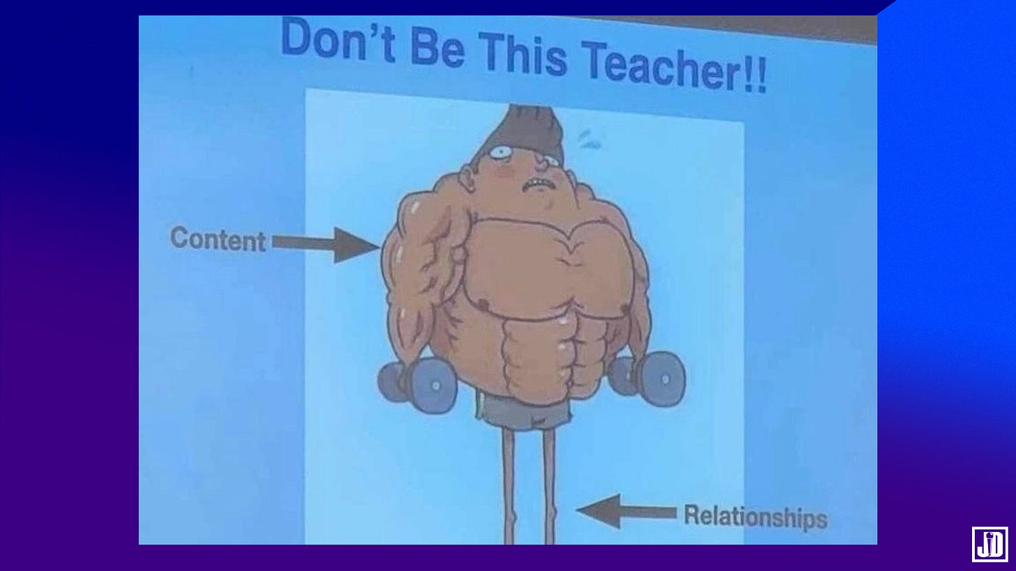 Social media posts are a culturally-relevant, relatable way to add some levity to your lectures. Here’s a meme that I use in my professional development work. It highlights the core challenge I solve through my work in a visually striking, and humorous way: